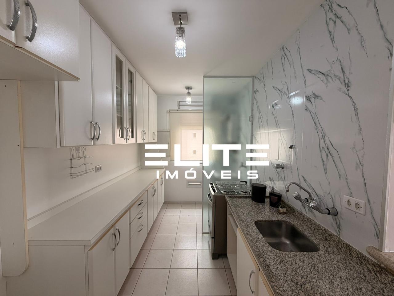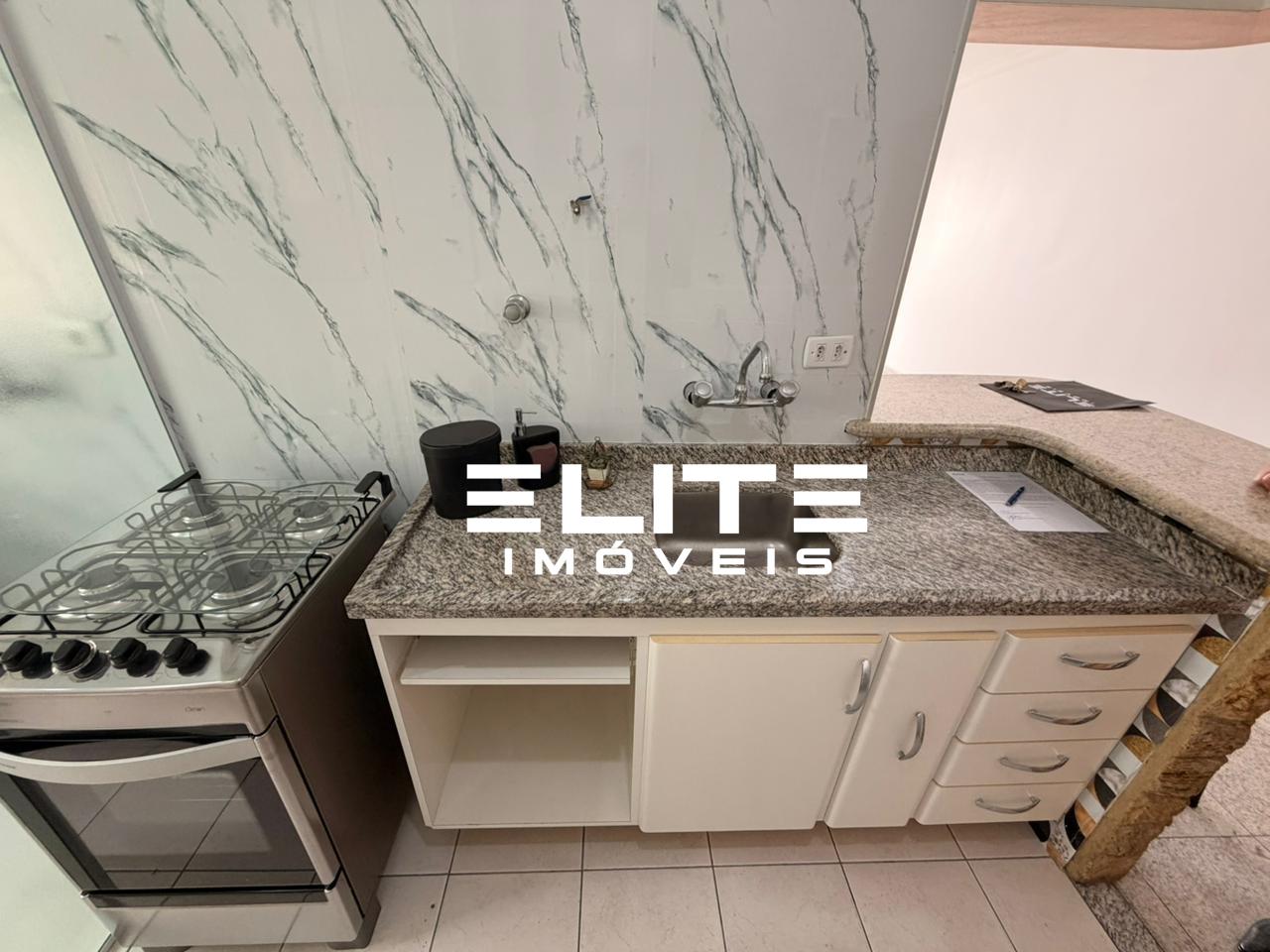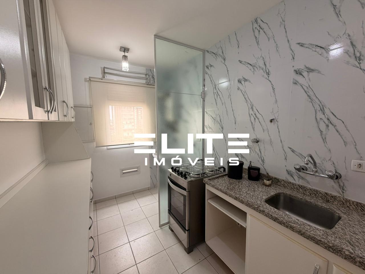 Com 01 dormitório com planejados e cama, sala com rack e sacada, cozinha planejada com fogão, área de serviço om divisória de vidro e com aquecedor, 01 banheiro com gabinete e box, 01 vaga de garagem.