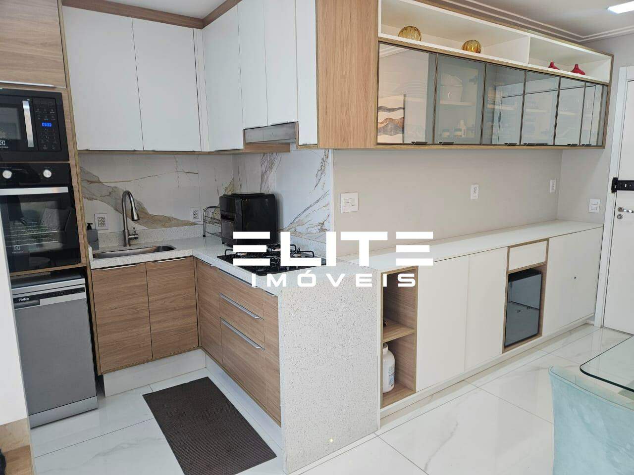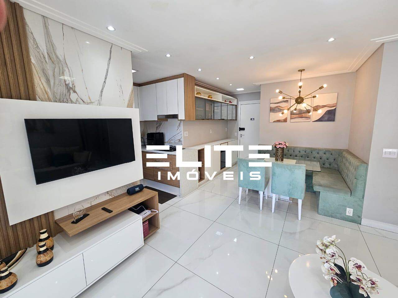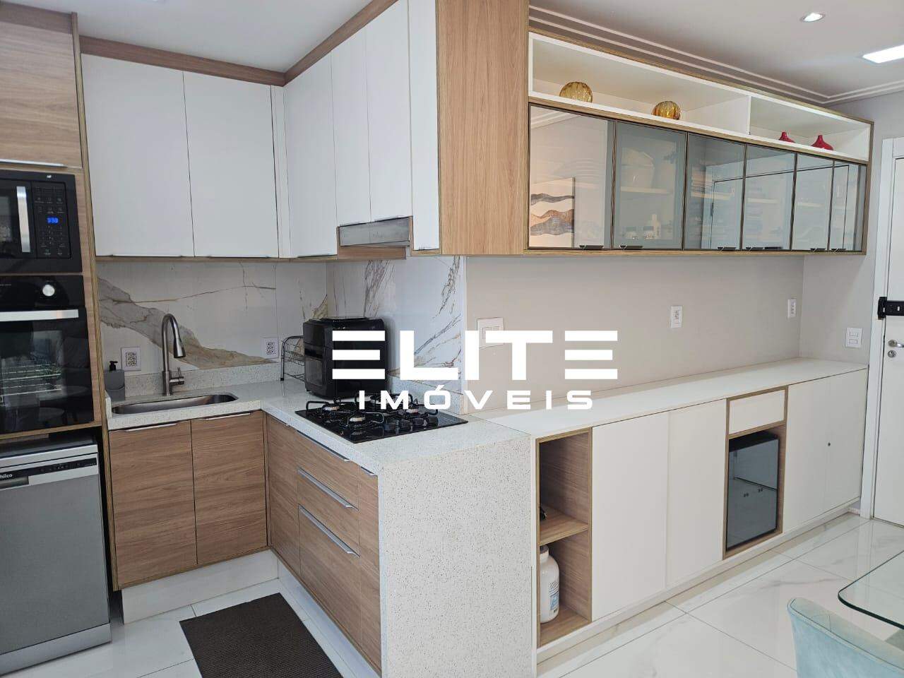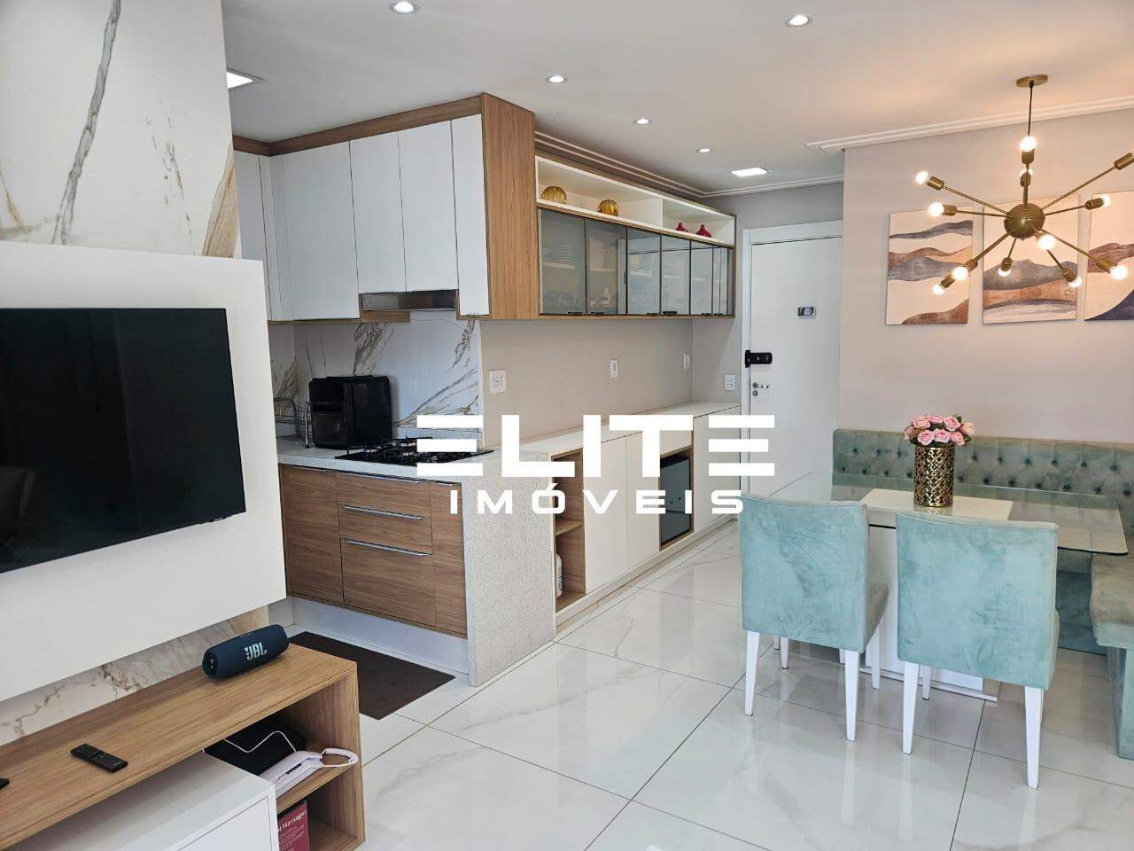 Fica todos móveis planejados da cozinha, eletros embutidos como microondas, forno, lava louças, depurador, sofá, mesa de jantar com cadeiras, canto alemão, mesinhas de centro, quadros etc.