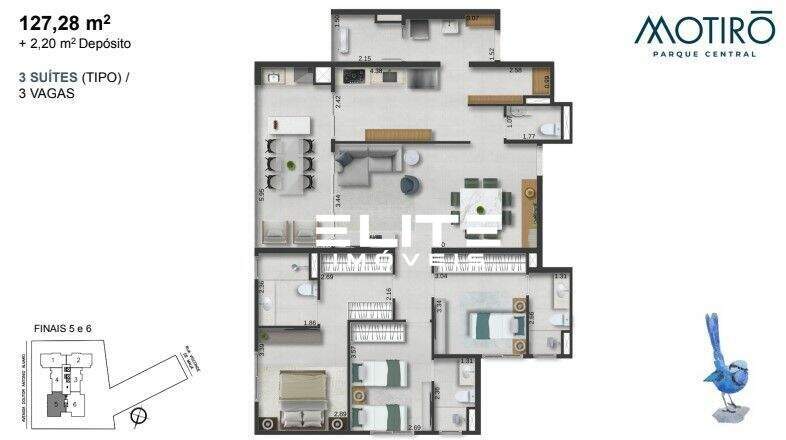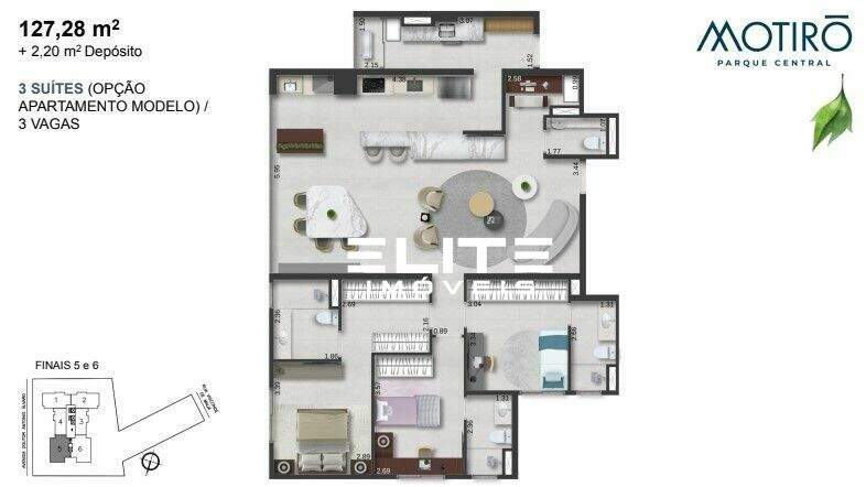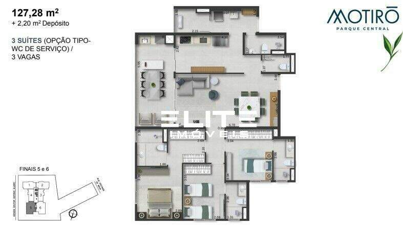 Apartamento de 127 metros + 2,20 de depósito privativo, 3 dormitórios, sendo 1 suíte (opção: sala integrada a cozinha e área de serviço estendida). varanda, 2 vagas de garagem.Entrega em dezembro de 2026.Piscina adulto e infantil, bar de piscina, deck molhado, sauna com descanso, salão de jogos, vestiário, beauty care, fitness externo, brinquedoteca, playground, coworking, bicicletário, salão de festas, espaço gourmet, churrasqueira, lounge externo com lareira, quadra de vôlei quadra beach sports, quadra recreativa, churrasqueira para as quadras, espaço família e espaço pet.Em uma excelente localização, em um bairro com uma variedade de comércios, restaurantes, padarias, colégios e muito mais para o seu dia a dia. Ao lado do Parque Central e do Shopping ABC, o Condomínio está estrategicamente localizado para o mais fácil acesso às principais vias da cidade.