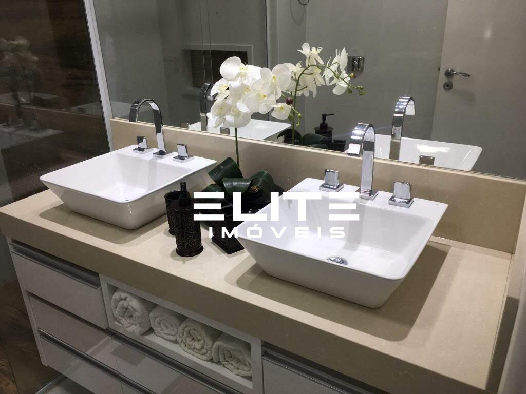 A cozinha planejada combina funcionalidade e design, equipada com armários de alta qualidade e excelente aproveitamento de espaço. O lavabo social complementa o ambiente com charme e conveniência para receber visitas.