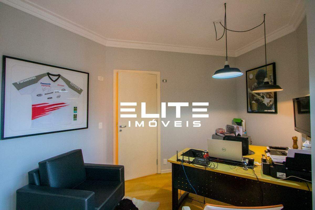 Conforto e privacidade distribuídos em 4 suítes sendo 1 suíte master, living amplo com sala de tv, sala de lareira e sala de jantar, cozinha planejada integrada com a varanda gourmet, dependência empregada com wc, 5 vagas de garagem mais 1 vaga de moto.Lazer com piscina aquecida, salão de festas, churrasqueira, academia, sauna e quadra poliesportiva. Portaria 24 horas