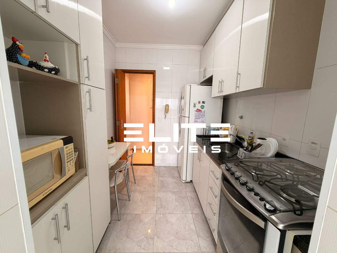 A área social dispõe de uma sala de TV aconchegante integrada à sala de jantar, formando um ambiente funcional e agradável. A cozinha planejada é prática e bem equipada, com móveis sob medida e excelente ventilação. A área de serviço é bem iluminada e arejada, contando com despensa e varal.