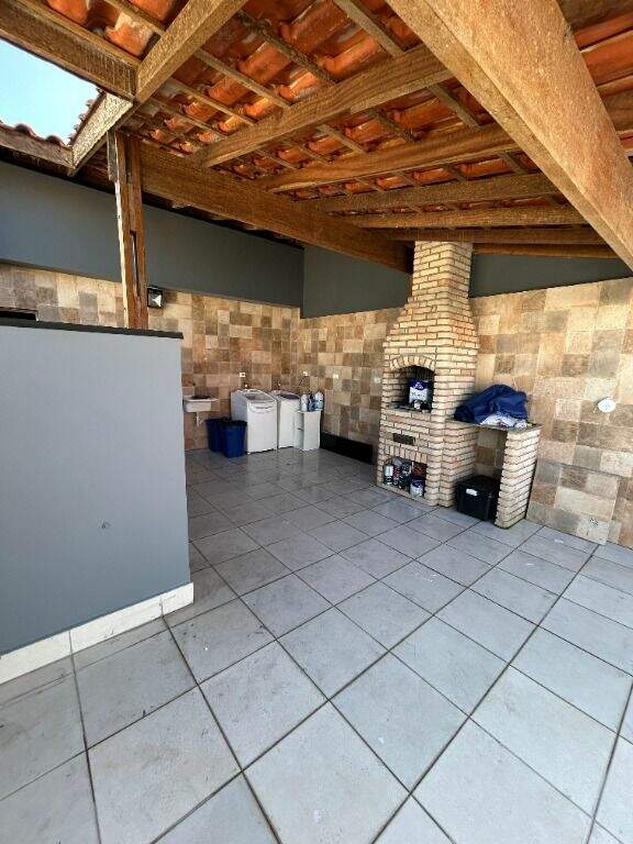 2 quartos sendo 1 com planejados, sala 2 ambientes, cozinha planejada, 1 banheiro, cobertura com churrasqueira e lavanderia cobertos, 2 vagas