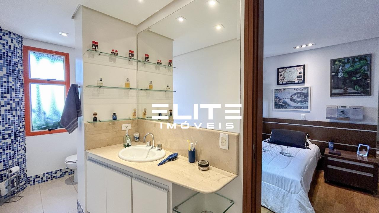 3 suítes amplas, todas com armários planejados, sendo a suíte master um verdadeiro refúgio, com aproximadamente 60 m², dois banheiros (senhor e senhora), amplo closet e duas sacadas privativas, garantindo total conforto e privacidade ao casal;