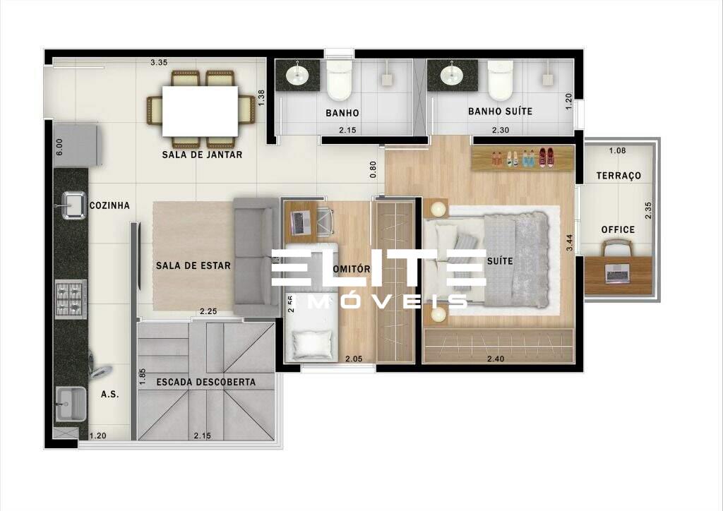 Planta funcional com excelente aproveitamento dos espaços
