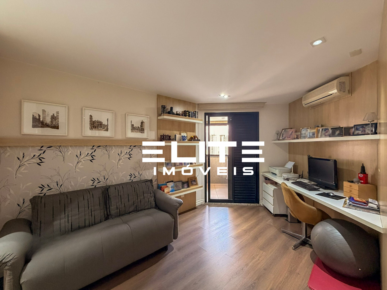- Um dos quartos foi inteligentemente adaptado para um escritório privativo, ideal para home office