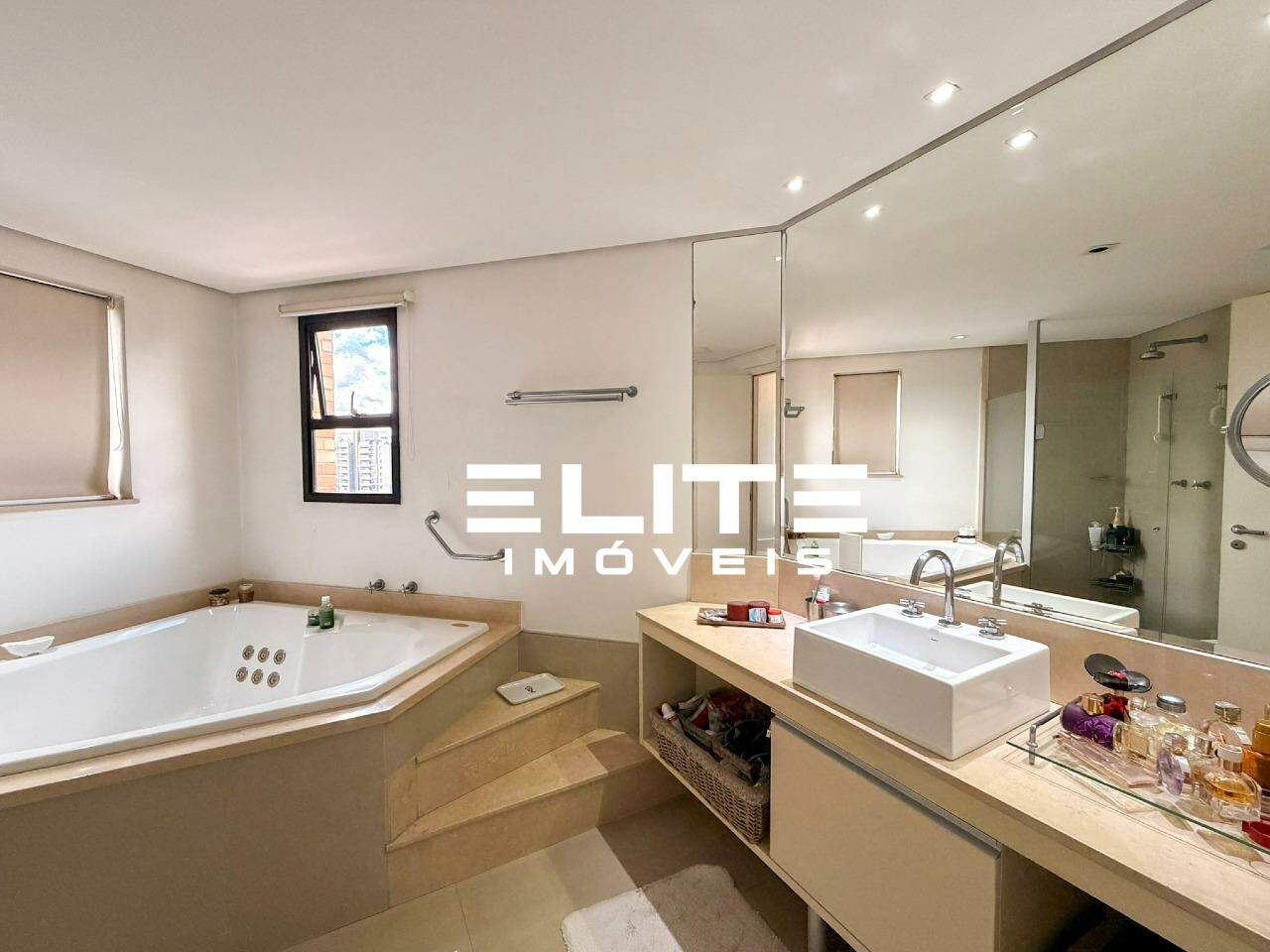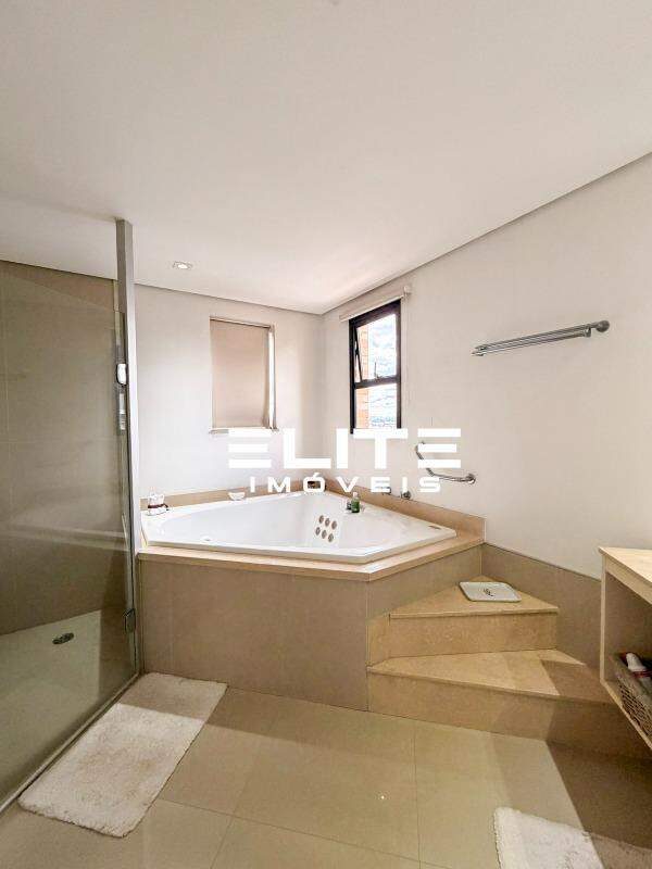 - A suíte master oferece closet, banheira de hidromassagem e um ambiente acolhedor