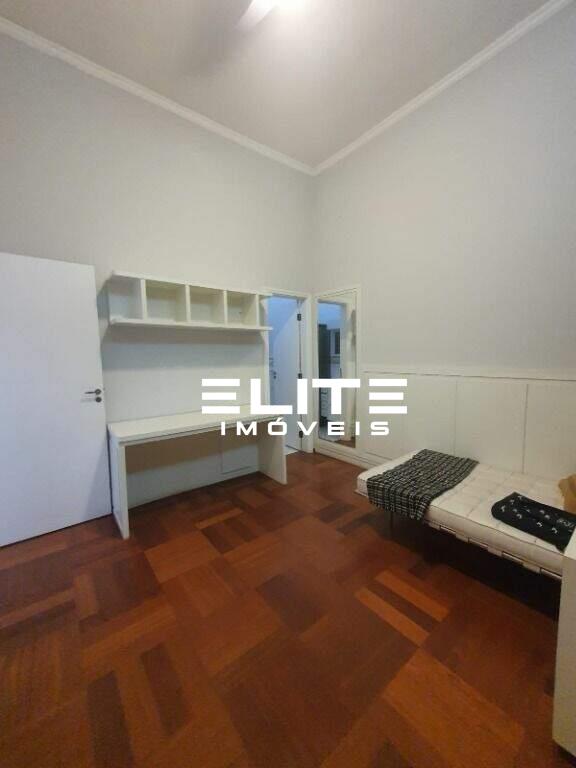 São 3 suítes, sendo 1 máster, além de escritório no piso superior. A área social conta com ampla sala para 3 ambientes com pé direito duplo de 5 metros, proporcionando imponência, luminosidade natural e excelente ventilação. Possui ainda lavabo, copa, cozinha planejada, despensa, dependência de empregada e área de serviço.