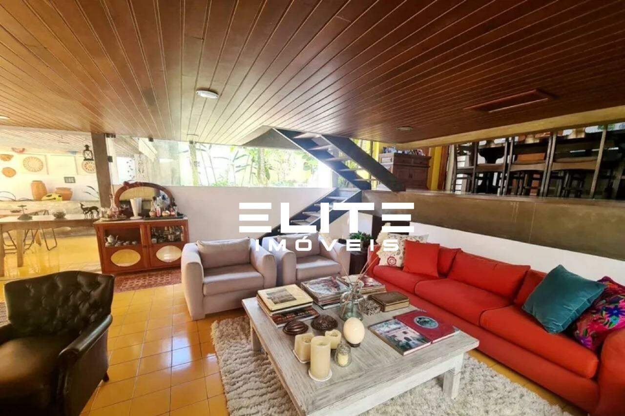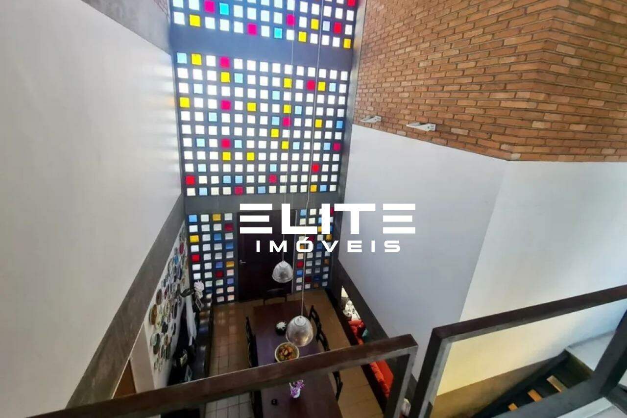 O sobrado apresenta uma estrutura tripla imponente, com vãos abertos que conectam os ambientes de forma fluida e natural.