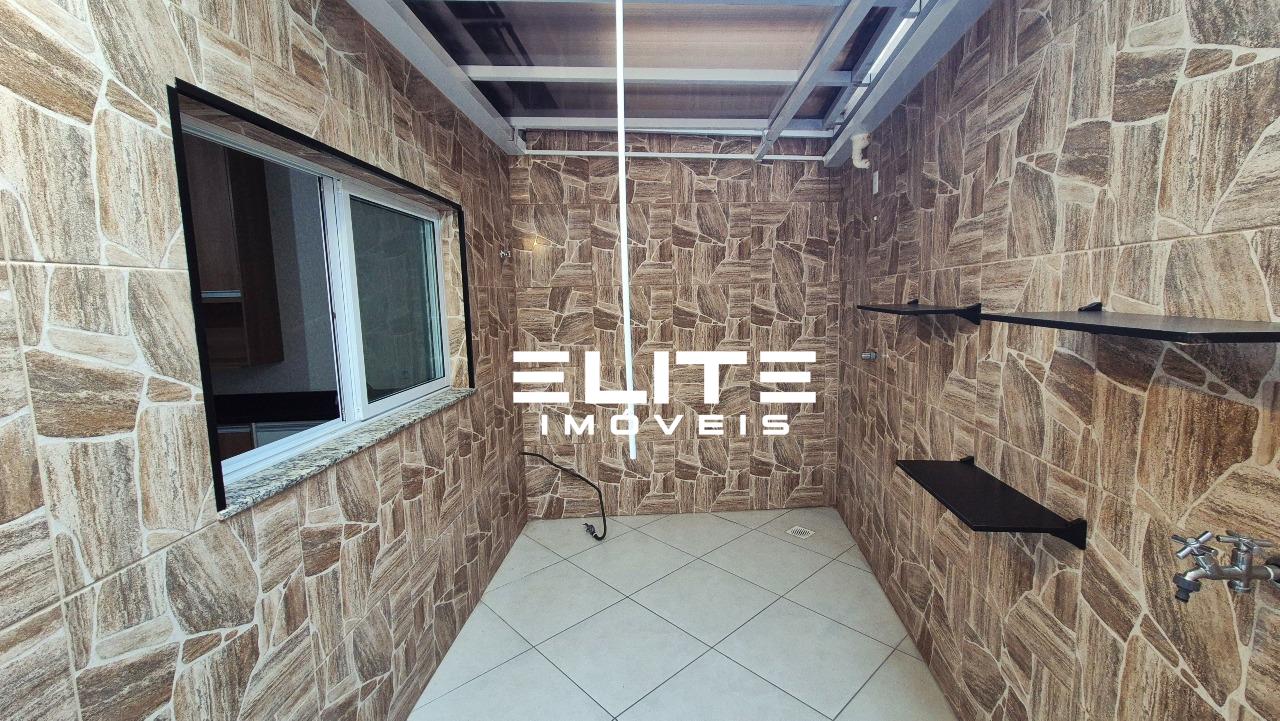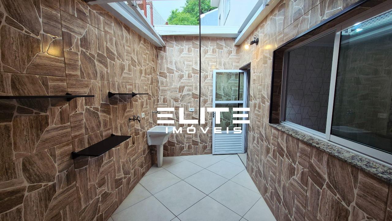 Nos fundos, o quintal com área de serviço cria um espaço funcional e bem separado da área social da casa. E as 2 vagas de garagem paralelas resolvem um problema comum de muitos sobrados: nada de manobras complicadas ou carros presos.