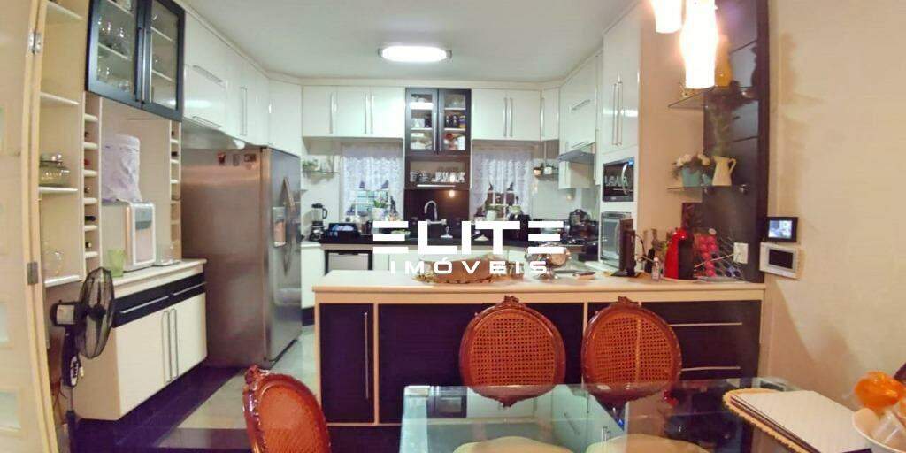 Sobrado Alto Padrão Vila AlpinaLocalizado ao lado do Bairro Jardim.Próximo de escolas, comércio e bancos.4 dormitórios planejados, sendo master com sacada e hidro, sala de estar e jantar, lavabo, copa/cozinha planejada, depósito, dependência de empregada, quintal com churrasqueira, 4 vagas.